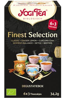 Yogi Tea Finest Selection is een selectie van verschillende Yogi Thee smaken en bevat van iedere soort 3 theezakjes: