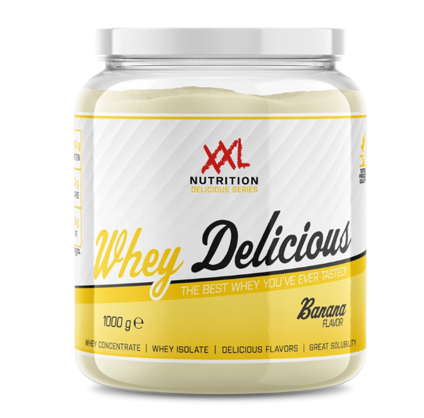 XXL Nutrition Whey Delicious Banaan bevat wei-eiwitten, BCAA's en glutamine en heeft een eiwitpercentage van 80%. Deze shake is lekker romig en levert per portie van 30 gram 24 gram eiwit en 1,77 gram koolhydraten.