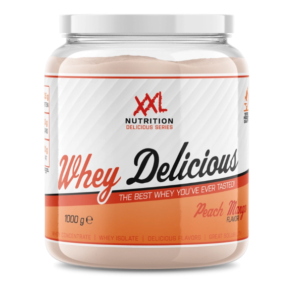 XXL Nutrition Whey Delicious Perzik Mango is een makkelijk en lekkere eiwitshake en bevat wei-eiwitten, BCAA's en glutamine en heeft een eiwitpercentage van 80%. Deze shake is lekker romig en levert per portie van 30 gram 23,5 gram eiwit en 1,6 gram koolhydraten.