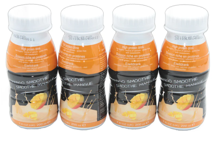 Lekkere proteinerijke smoothies met mangosmaak! Heerlijk romig en eiwitrijk met frisse smaak en met 15 gram eiwit per flesje. Geschikt in het eiwitdieet en met 3,1 gram koolhydraten per portie ook in het koolhydraatarm dieet.